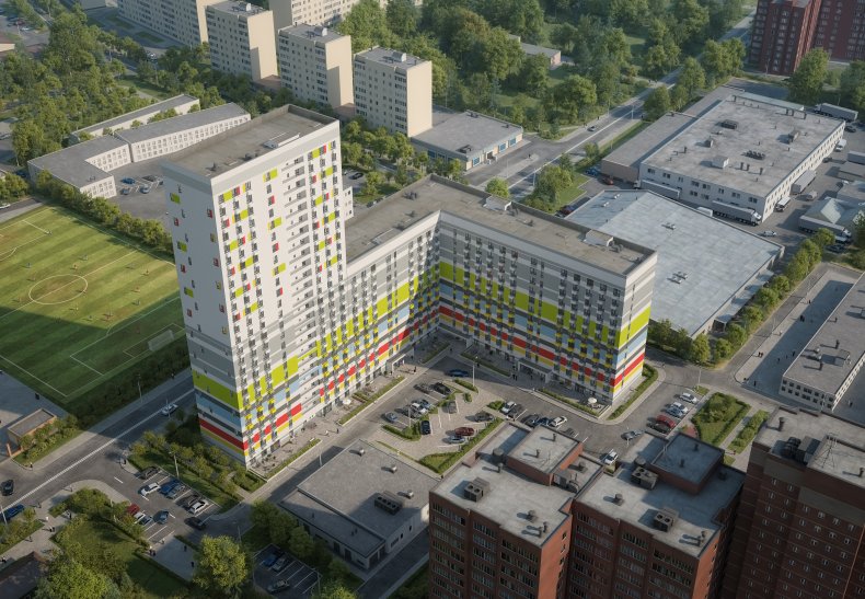 Жилой комплекс эконом-класса «Краснознаменская, 17» состоит из двух разновысоких секций на 12 и 25 этажей. Квартиры предполагают 12 планировочных решений — от компактных студий на 22 м² до полнометражных трехкомнатных размером 88 м² с гостевыми санузлами. В необычный архитектурный стиль дома органично вписываются декоративные блоки для кондиционеров, что решает вопрос с их размещением на фасаде здания. Входные группы расположены на уровне земли — никаких пандусов и ступенек. Двор организован как прогулочная зона с аллейками и лавочками. ЖК находится в центре города, что открывает доступ ко всей инфраструктуре.