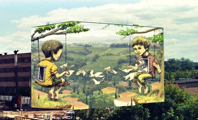 По задумке, на стенах будут изображены мальчики на качелях на фоне пейзажа Крыма. Мальчики будут писать письма, которые, превратившись в птиц, будут перелетать через пропасть.