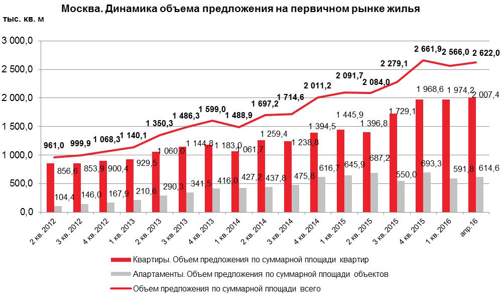 Согласно информации центра аналитики именитого агентства Est-a-Tet, которое является абсолютным лидером по реализации новостроек в регионе, к окончанию апреля текущего года столица заняла самую высокую позицию в рейтинге по общему показателю предложения на рынке «первички». В Старой Москве отмечено 498 новых корпусов, составивших 2.62 млн «квадратов» жилой недвижимости. Причем эксперты отмечают, что предложение «первички» в столице возросло до 1.7% в сфере квартир и почти на 4% в области апартаментов. Отмечается также общее увеличение предложения, если сравнивать показатель с мартом 2016 года, на 2.2%, а в сопоставлении с 2015 годом — на 30%. В апреле текущего года в продажу поступили жилплощади масштабных и перспективных объектов , таких как, к примеру, ЖК «Родной город. Воронцовский парк», ЖК «Фили Парк», «Отражение» и проч. Реализуются новые корпуса в следующих жилкомплексах: ЖК Life-Ботанический сад, ЖК «Золотая Звезда», ЖК «Кварталы 21/19», ЖК «Некрасовка» и др.