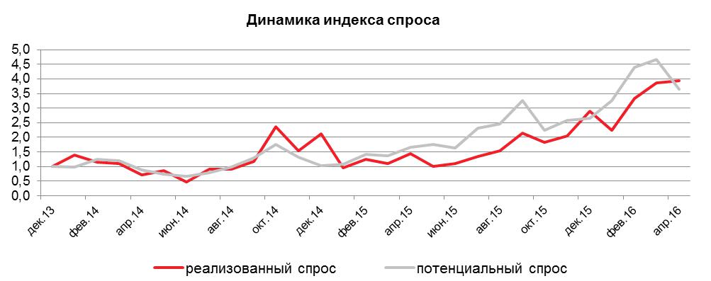 Согласно статистике, предоставленной экспертами Est-a-Tet, в апреле зафиксировано увеличение реализованного спроса на рынке «первички» на 1.8% уменьшение потенциального спроса до 22%. Эксперты признают, что на колебания спроса влияет как нестабильность валютного курса, там и акции, дисконты, предлагаемые девелоперами для продвижения проектов.
