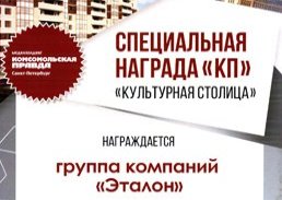 В августе строительная группа «Эталон» была отмечена наградой «Культурная столица», выданной известным медиахолдингом «Комсомольская правда».