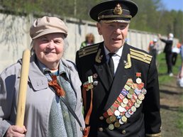 После завершения работ по высадке деревьев все участники мероприятия собрались на праздничном митинге в «Ржевском полигоне» и поздравили ветеранов с грядущими праздниками. Были возложены цветы к боевому орудию. Праздничное настроение создавал военный оркестр.