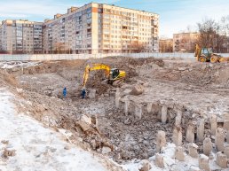 Напомним, что плановые строительные работы в ЖК «Твин Хаус» стартовали после обследования грунта и демонтажа существующих конструкций. На текущий момент на объекте полностью выполнены работы по устройству постоянного ограждения стройплощадки и монтированию освещения.