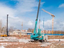 По соседству продолжаются работы по обустройству котлована второго корпуса. В настоящий момент ведется монтаж свайного поля.
