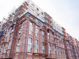 Третий корпус жилого комплекса полностью построен под кровлю – на стройплощадке завершены работы по устройству монолита, кладке внешних стен, монтированию лестничных маршей и вентблоков.