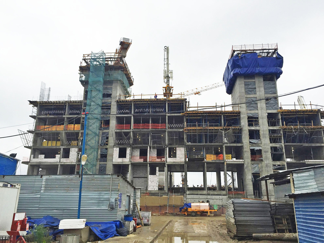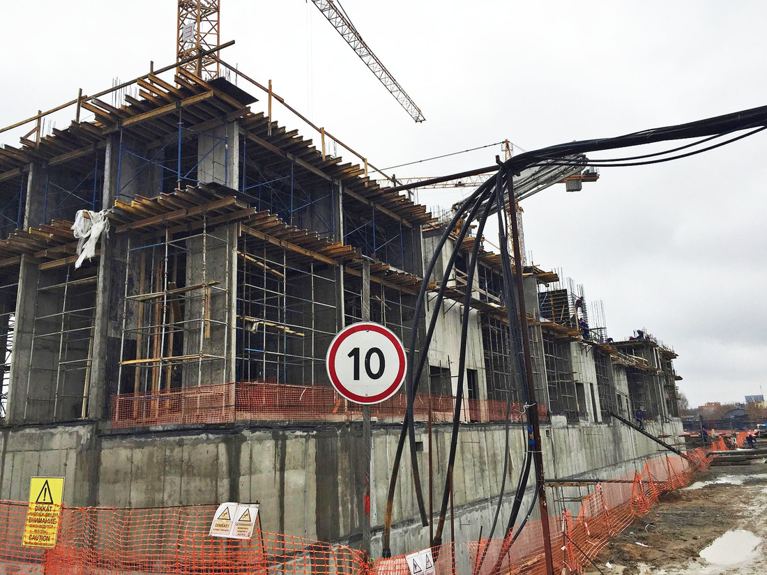 В настоящее время в секциях под номерами 4-7 ведется монтаж прочного монолитного каркаса на втором этаже. В секциях под номерами 8-10 аналогичные работы достигли шестого этажа. В секциях под номерами 1-3 завершилось обустройство лифтовых шахт.