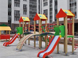 В настоящее время между корпусами под номерами 5 и 6 смонтирована первая игровая зона - безопасный комплекс с горками и песочницами.
