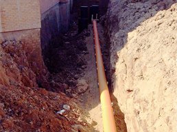 Строители завершают монтаж ливневой канализации и обустройство бытовой канализации. Вдоль корпуса номер 9, а также между корпусами под номерами 1, 3 и 7 уже проведены все сети коммуникаций. Возле корпуса номер 12 заканчивается укладка труб.