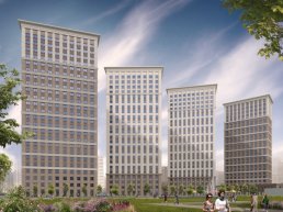 На текущий момент на стройплощадке комплекса на 100% выполнены работы по устройству монолитных конструкций, завершаются работы по отделке фасадов.