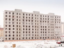 Третий корпус жилого комплекса полностью построен под кровлю – на стройплощадке завершены работы по устройству монолита, кладке внешних стен, монтированию лестничных маршей и вентблоков.