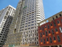 Во втором доме в новостройке от «СП-Холдинг» в середине ноября начались фасадные работы, монтаж конструкций из алюминия и кладка внешних стен и внутри здания.