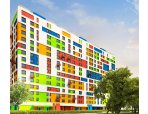 Строители объекта трудятся круглые сутки, благодаря чему он практически готов к вводу в эксплуатацию. Отделка квартир почти закончена, а фасады здания такие же яркие, как и планировалось.