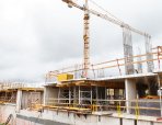 На стройплощадке второго корпуса ЖК «Олимп» завершены работы по монтированию вертикальных конструкций пятого этажа на секции № 1. На остальных секциях сейчас производится обустройство перекрытий.