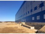 На данный момент работы на строительной площадке складского комплекса монтируются сендвич-панели и ливневая канализация.